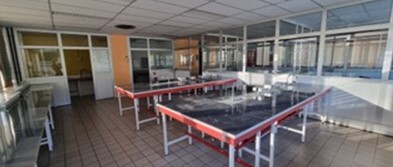 Bâtiment industriel de 355 m² comprenant un laboratoire et une unité de fabrication, conditionnement et stockage ainsi qu'une partie bureau. Le propriétaire vient de réaliser des travaux de rénovation, (électricité, sanitaires, mur et sol)