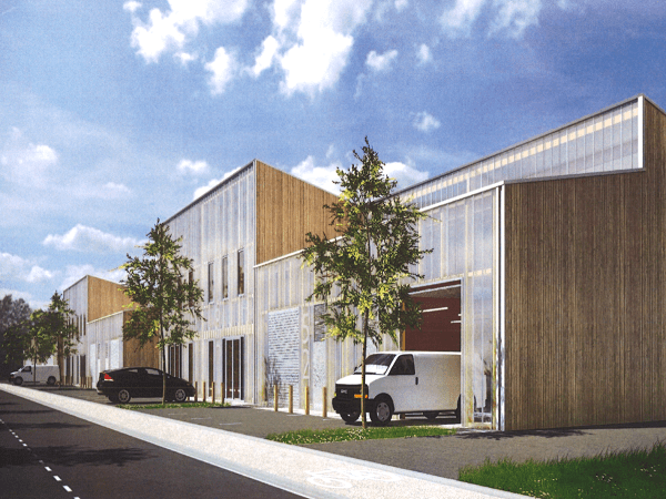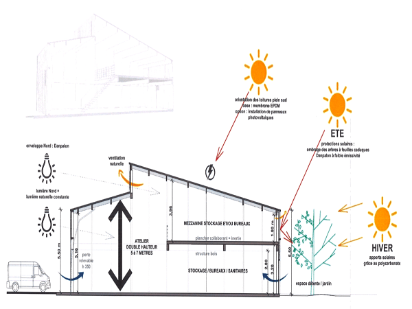 Bâtiment disposant de façades en bois et polycarbonate permettant une belle luminosité