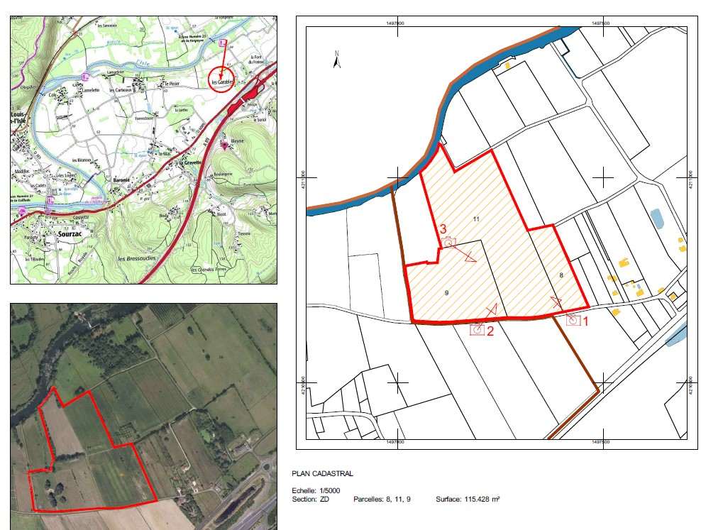 Le terrain d'une superficie totale de 11 ha 54 a  est desservi par une voie communale N°22 et accès direct à l’autoroute A89 ( station de péage et bretelle d’accès à 500m)