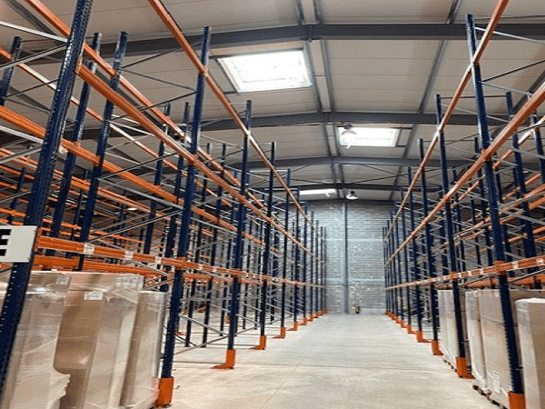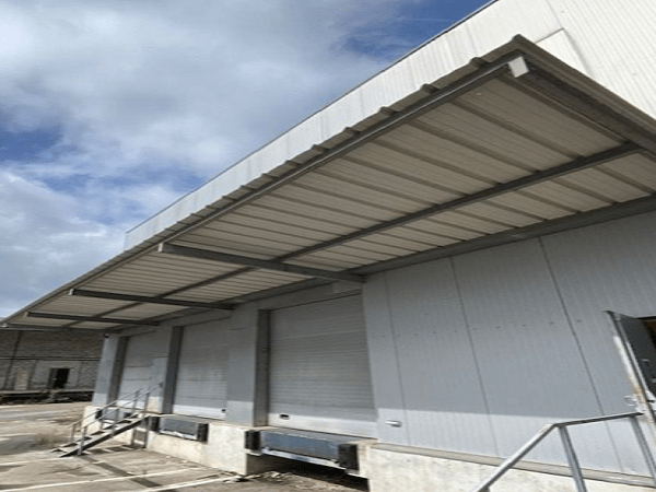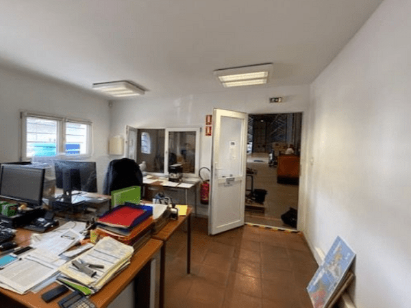 Bâtiment composé d'un dépôt racké, de trois quais niveleurs, de portes sectionnelles et d'une rampe d'accès. Attenant à celui-ci se trouve un espace bureau