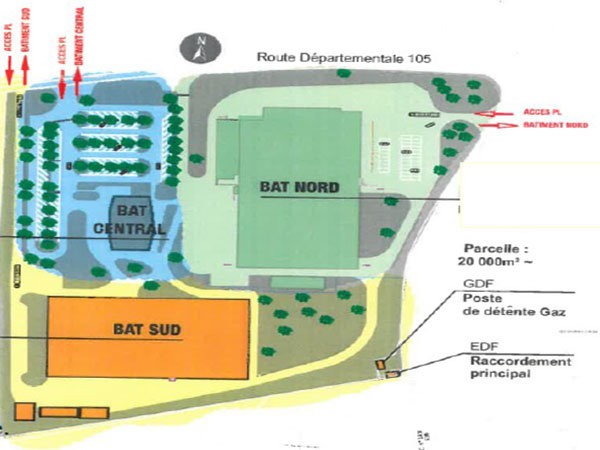 Un bâtiment NORD de 3 600m² + locaux annexes (divisé), un bâtiment SUD de 6 000m² + locaux annexes et un bâtiment CENTRAL de 1 400m² sur deux niveaux, locaux sociaux en rdc et grand plateau libre de type réfectoire en N+1. Caractéristiques techniques: structure métallique de grande portée avec toiture type shed translucide pour partie, accès de plain pied par grandes portes coulissantes et surfaces de bureaux disponibles. Installations techniques et réseaux disponibles eau, gaz, électricité, facilité de circulation interne et de stationnement VL, PL et site entièrement clos et sous protection alarme barrière périmétrique + levée de doute vidéo. Les bâtiments sont à louer, le prix est de 42 euros ht/hc/m²/an.