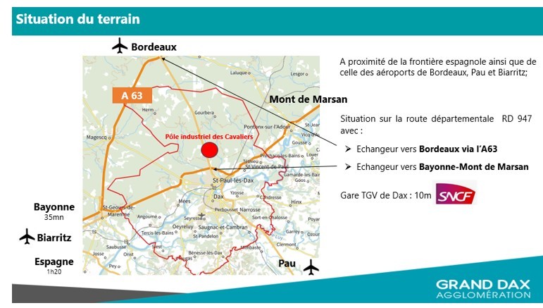 Située au cœur du Grand Dax (40), la Zone d’Activités Économiques (ZAE) des Cavaliers, propose un macro-lot de 3,8 hectares divisibles, idéal pour l’implantation de nouvelles entreprises industrielles et logistiques.