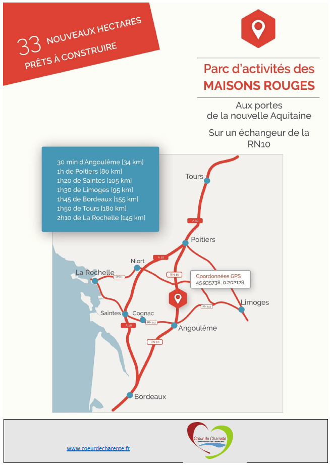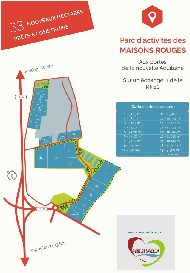 Situé à 10 minutes de Ruffec et Mansle, le Parc d’activités dispose d’un accès immédiat à la route nationale 10 (échangeur 50) et la route départementale 27