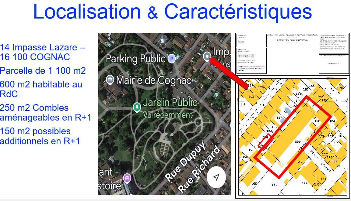 Authentiques chais à vendre en plein centre de Cognac sur une parcelle de 1100 m², 600 m² [...]
